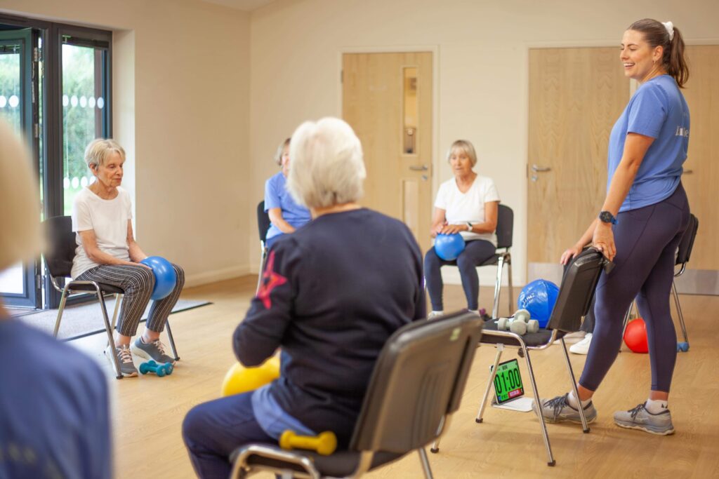 Adapted exercise sessions for care homes, hospitals, and healthcare settings, delivered with care, experience, and understanding.